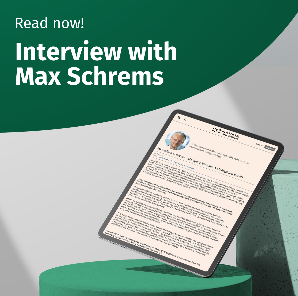 We are pleased to share that Maximilian Schrems, Managing Director of VTU Engineering in Switzerland, recently gave an interview to PharmaBoardroom.