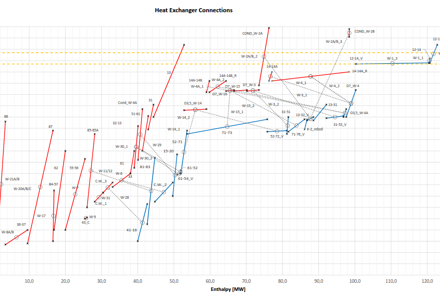 Zu Beginn haben die Energieexperten die Monatsverbräuche aller Energieträger und Medienverbräuche erfasst, analysiert, anschließend in Diskussion gemeinsam bewertet und die nächsten Schritte daraus abgeleitet. In Anlagen-Begehungen vor Ort mit dem Fokus auf Energieineffizienz brachte der Blick von außen die Basis für neue Diskussionen. Eine Betrachtung der Stromverbraucher führte durch Vergleiche über Anlagengrenzen hinweg zu neuen Erkenntnissen, diese flossen auch in die Empfehlungen für weitere Umsetzungsmaßnahmen ein. Besonderes Augenmerk wurde auch auf die Großverbraucher und Dauerläufer mit mittelgroßen Anschlussleistungen gelegt, ein typisches Beispiel dafür sind Pumpen in Betriebsnetzen wie z.B. Kühlwasserpumpen. Die Analyse der Betriebspunkte und der Abgleich mit Betriebs- und Wirkungsgradkurven zeigte spannende Einsparpotentiale. Mit dem Simulationsprogramm ASPEN plus wurden drei Produktionsanlagen für Salpetersäure, Harnstoff und Polypropylen im Detail modelliert und mit dem Modul Aspen Energy Analyzer nach optimaler Wärmeintegration gesucht. Trotz sehr hoher Integration der Anlagen am Standort Linz konnten noch einige attraktive Einsparpotentiale gehoben werden, die in Folge-Projekten umgesetzt werden.